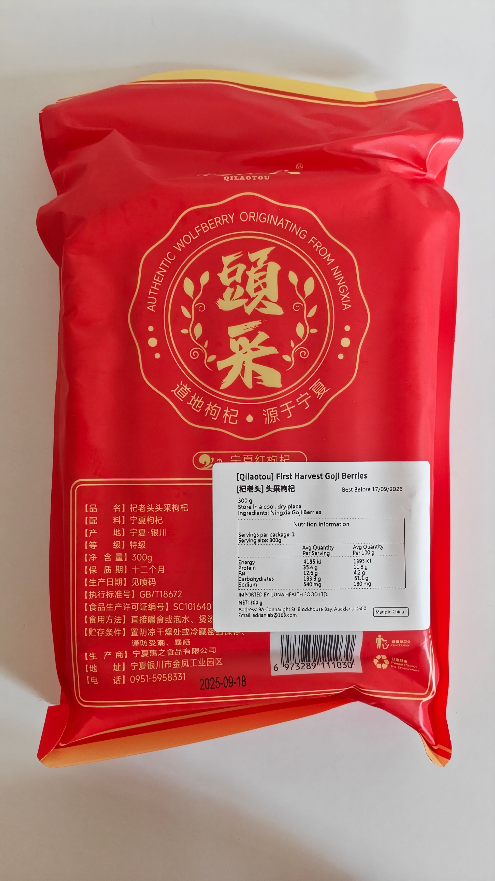 First-Harvest Ningxia Goji Berries | 30×10g Individually Sealed Packs
