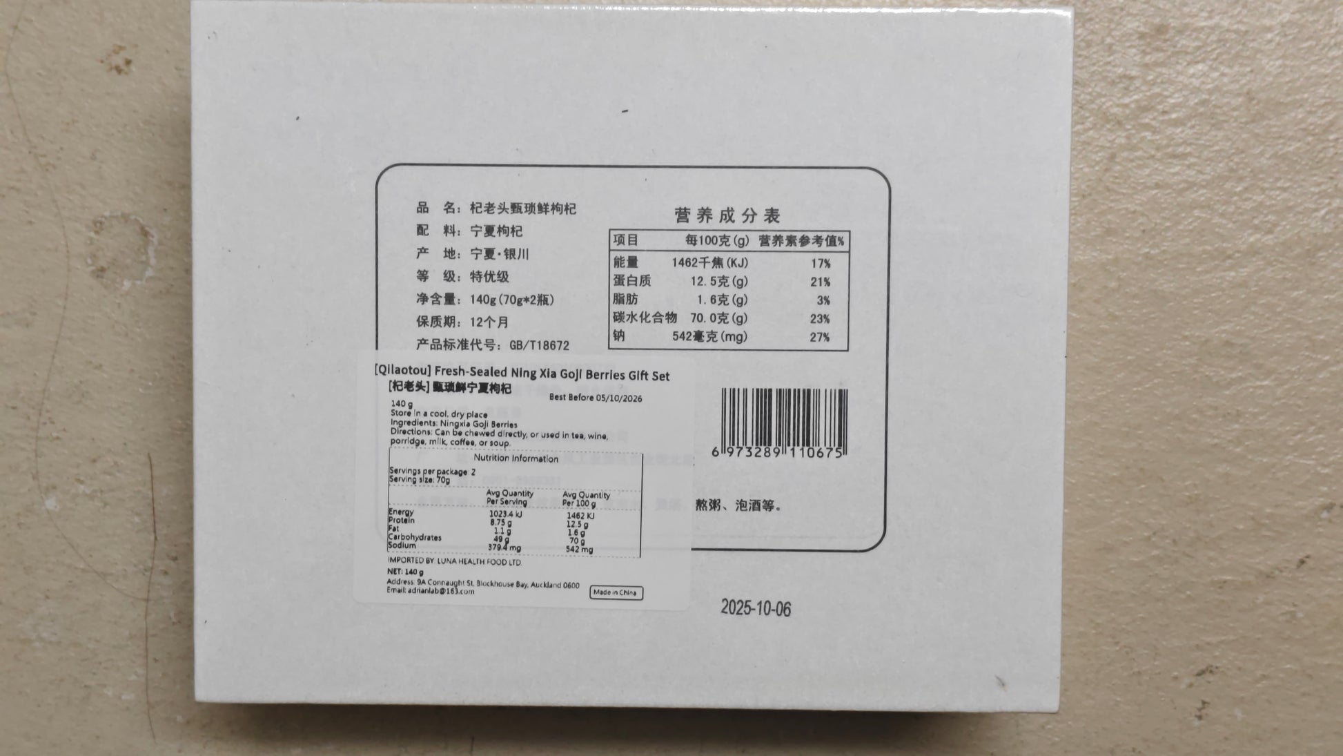 This fresh-sealed goji berry gift set is made with carefully selected goji berries and packaged using a freshness-sealing process to help preserve their natural colour, flavour, and texture. Each set contains two individual jars (70g × 2), designed for convenient storage and everyday use.